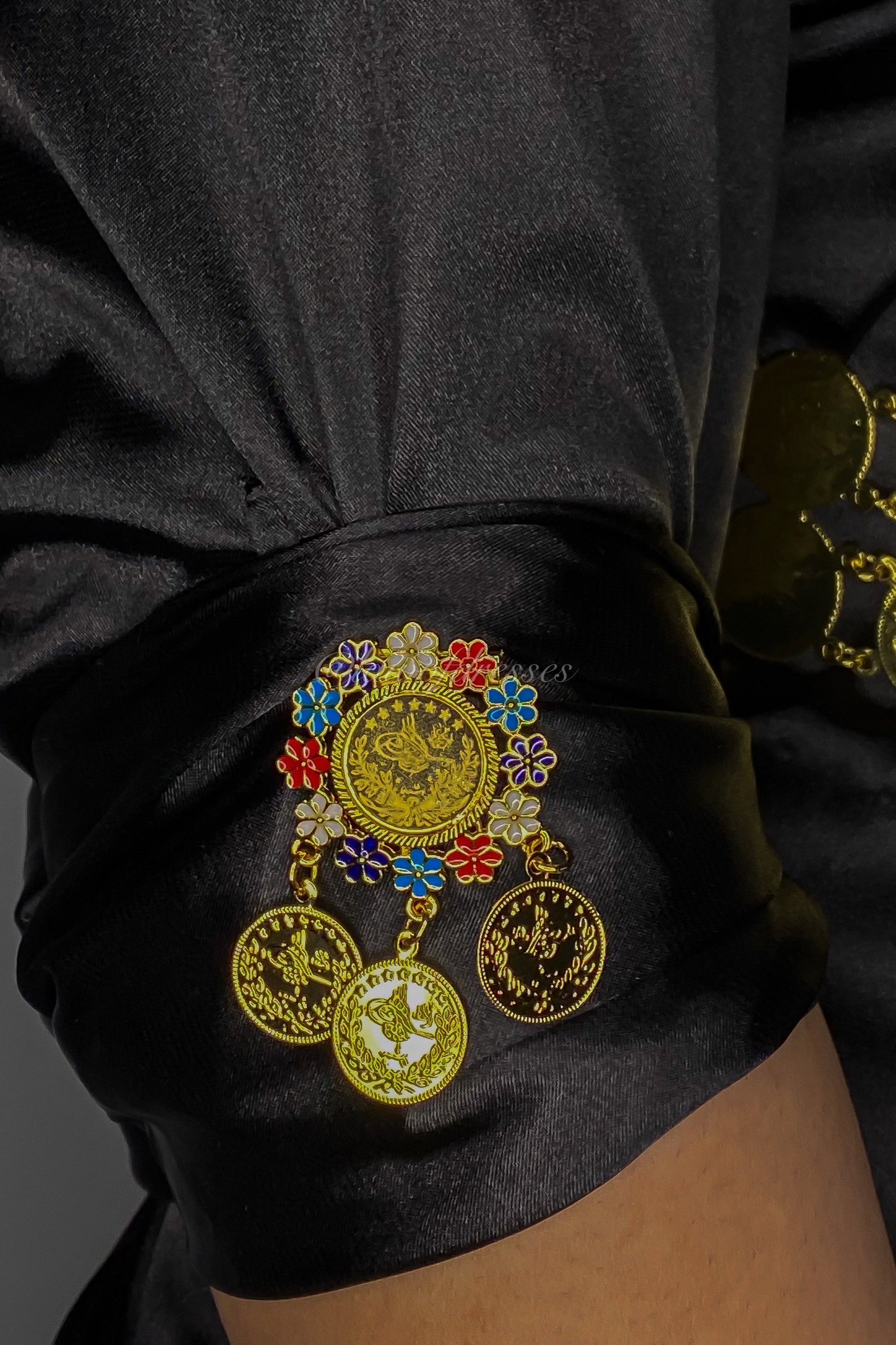 Add a touch of refinement and glamour to your traditional Kurdish dress with our elegant broche. This meticulously crafted brooch is perfect for accentuating the sleeves of your dress, adding an authentic and stylish element to your outfit.